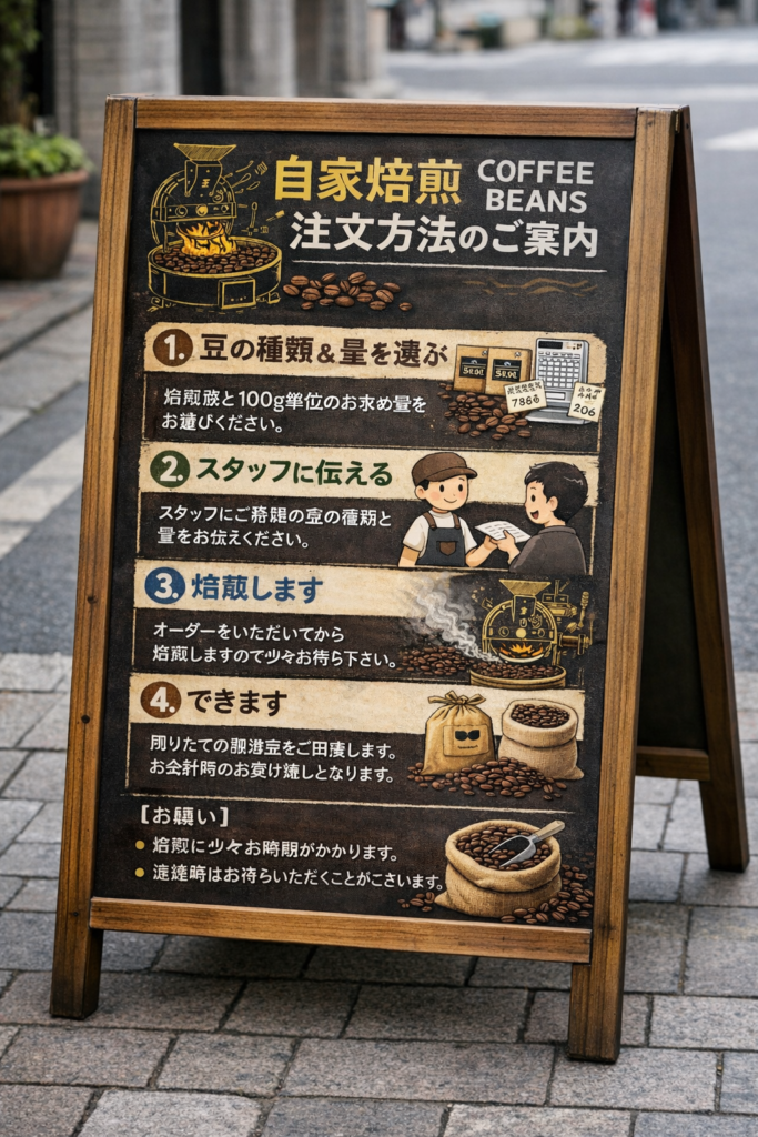 - 何の店か: 自家焙煎コーヒー店(一瞬で判別)